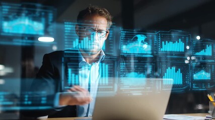 Businessman Overlooking Futuristic Data Analytics Display Videos