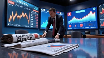 Businessman Presenting Stock Market Data Analysis Videos