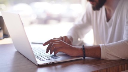 working on laptop