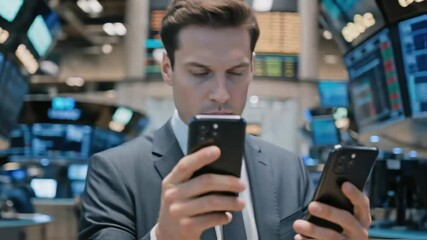 Businessman Using Smartphone Analyzing Financial Data Analytics Videos