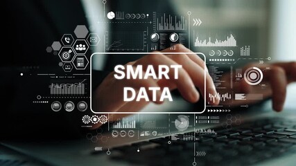 Businessman Using Smartphone With Analytics Overlay Videos