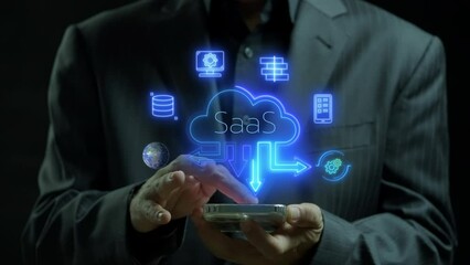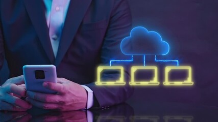 Businessman Using Smartphone With Cloud Computing Icons Videos