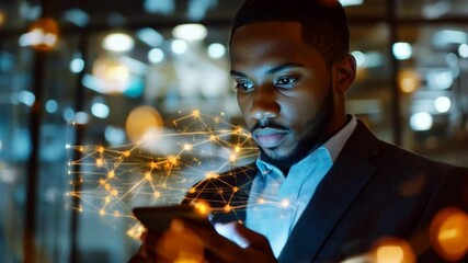 Businessman Using Smartphone With Digital Data Overlay Videos