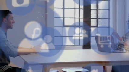 Businessman Using Tablet Technology With Digital Data Icons Videos