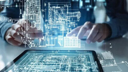Businessman Using Tablet Visualizing Digital Data Network Videos