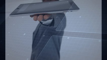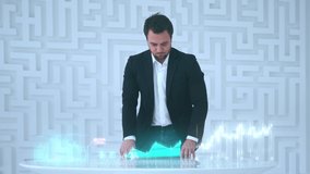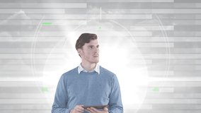 Businessman Using Tablet With Futuristic Digital Interface Overlay Videos