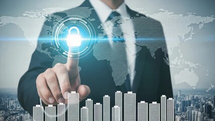 Businessman Using Touchscreen With Global Network Overlay Videos