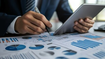 Businessman Utilizing Tablet For Data Analysis And Strategy Videos