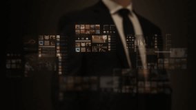 Businessman Wearing Vr Headset With Binary Code Overlay Videos