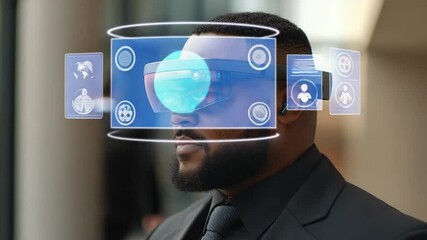 Businessman Working With Digital Interface And Headset Videos
