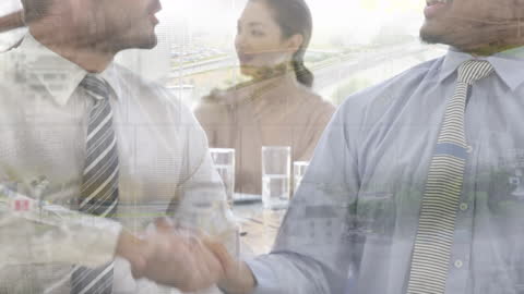 Businessmen Shaking Hands With Digital World Map Overlay Videos