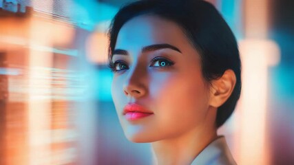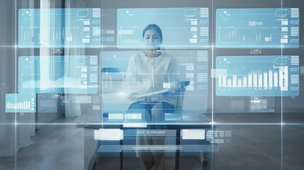 Businesswoman Analyzing Data Interfaces In Modern Office Setting Videos
