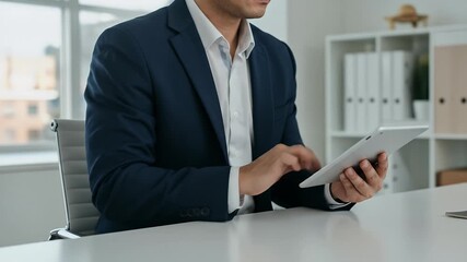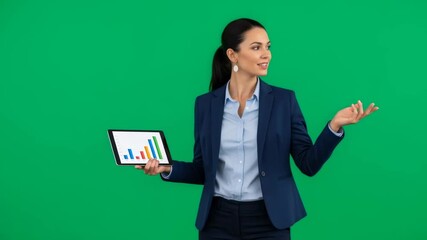 Businesswoman Analyzing Data On Tablet Device White Background Videos
