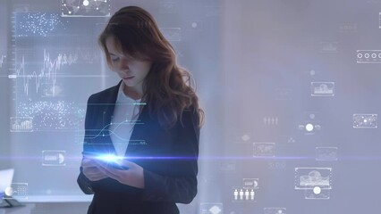 Businesswoman Analyzing Data On Virtual Interface Videos