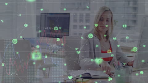 Businesswoman Analyzing Data Over Digital Graphics Overlay Videos