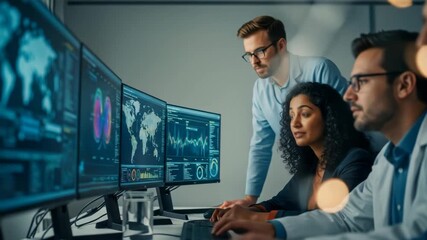 Businesswoman Analyzing Data Visualization Graphics Videos
