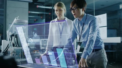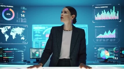 Businesswoman Analyzing Digital Data Graphs On Abstract Interface Videos