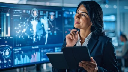 Businesswoman Analyzing Digital Data Technology Interface Videos