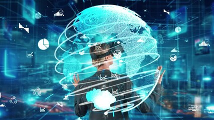 Businesswoman Analyzing Digital Data Through Headset Videos