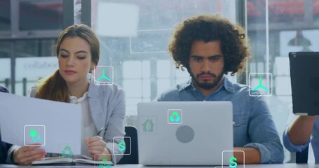 Businesswoman Analyzing Documents With Networking Icons Videos