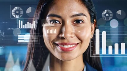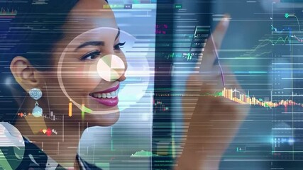 Businesswoman Analyzing Finance On Smartphone With Graph Overlay Videos