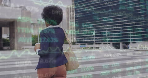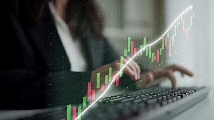 Businesswoman Analyzing Stock Data With Financial Graph Overlay Videos