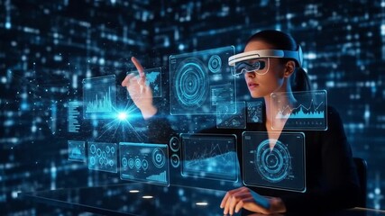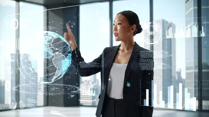 Businesswoman Interacting With Advanced Global Network Technology Videos