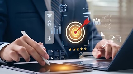 Businesswoman Using Laptop With Data Overlays Videos
