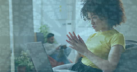 Businesswoman Using Laptop With Virtual Data Holograms In Modern Cafe Videos