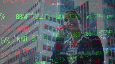Businesswoman Using Smartphone With Overlay Of Financial Data Charts Videos