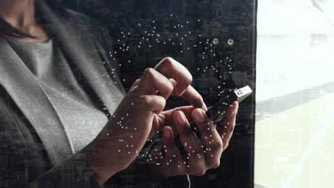 Businesswoman Using Smartphone With Overlay Of Financial Data Charts Videos