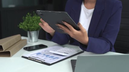 Businesswoman Utilizing Tablet For Global Data Analysis Videos