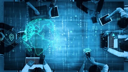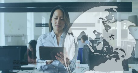 Businesswomen Using Tablets With Virtual Network Overlay Videos