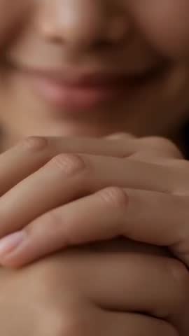 woman clasping hands