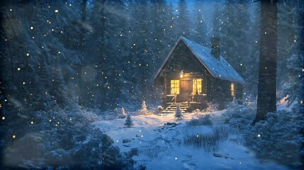 snowy cabin