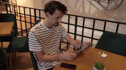 Cafe Owner Using Tablet With Animated Digital Elements Videos