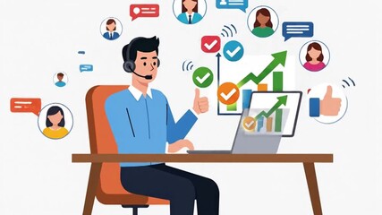 Call Center Team Analyzing Data With Headsets At Desks Videos
