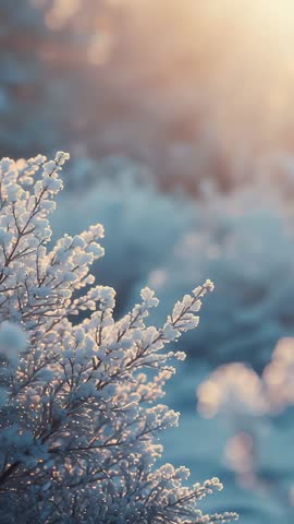 Camera Pulling Focus On Frosted Twigs Revealing Sparkling Ice Crystals In Winter Macro Videos