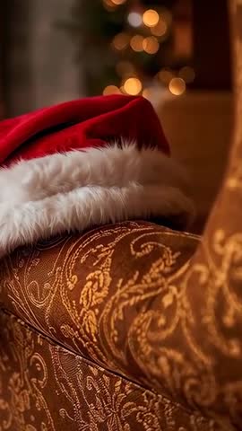 Camera Pulling In On Santa Hat Resting On Golden Beads With Sparkling Bokeh Glow Videos