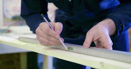 Carpenter Measuring Wood Precisely In Workshop Videos