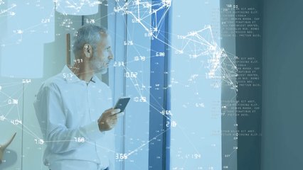 Caucasian Businessman Using Smartphone With Network Connection Overlay Videos