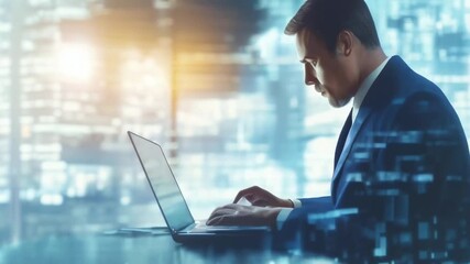 Caucasian Businessman With Digital Data Overlay In Office Videos