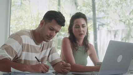 Caucasian Couple Engaging With Digital Data On Laptop Videos