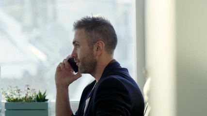 Caucasian Man Conversing On Phone With Colleague Videos