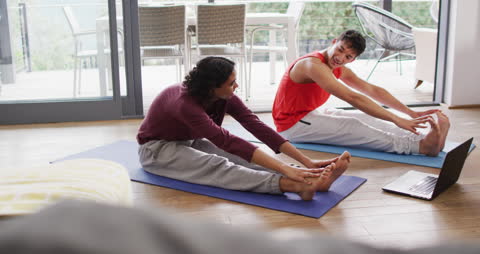 Caucasian Man Practicing Yoga On Sunny Beach With Mountain View Videos