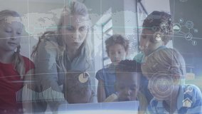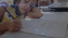 Caucasian Schoolboy Learning With Digital Graphics Overlay Videos
