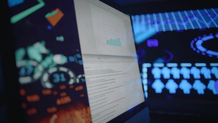 Caucasian Warehouse Workers Analyzing Digital Data Large Screen Displays Videos