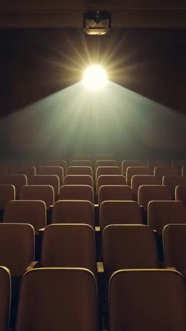Ceiling Projector Casting Dramatic Light Beams Across Empty Cinema Auditorium Videos