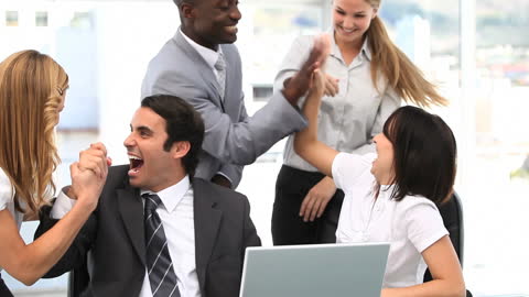 Celebrating Data Success In Modern Office With Team Joy Videos
