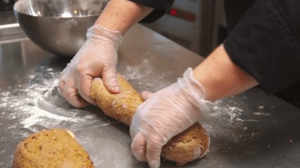 Chef Kneading Artisan Bread Dough Against Dark Background Videos